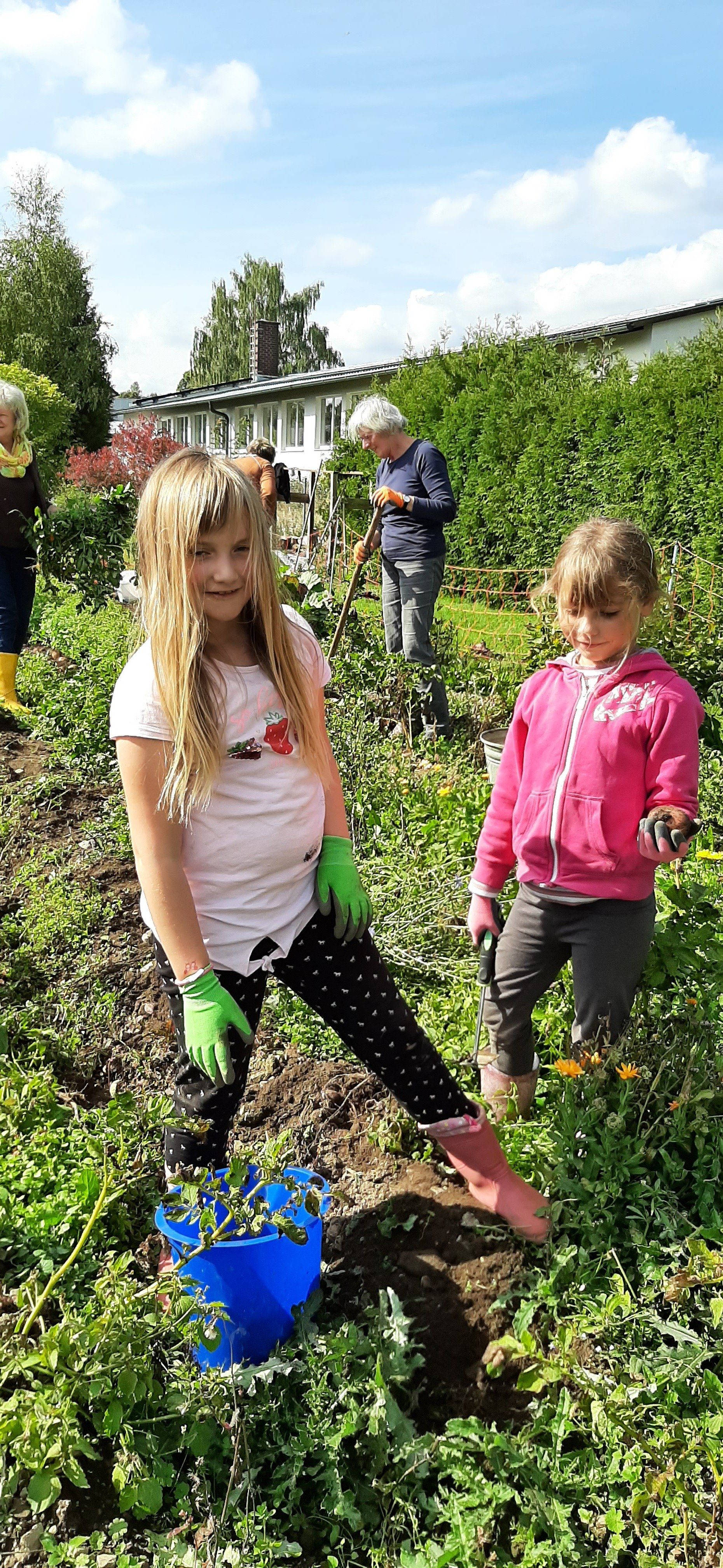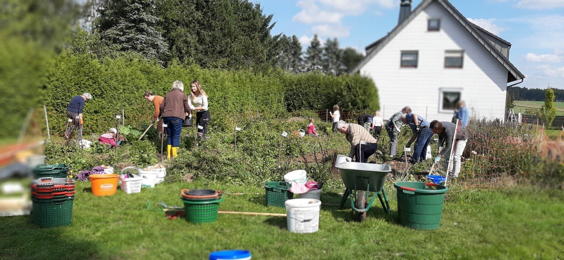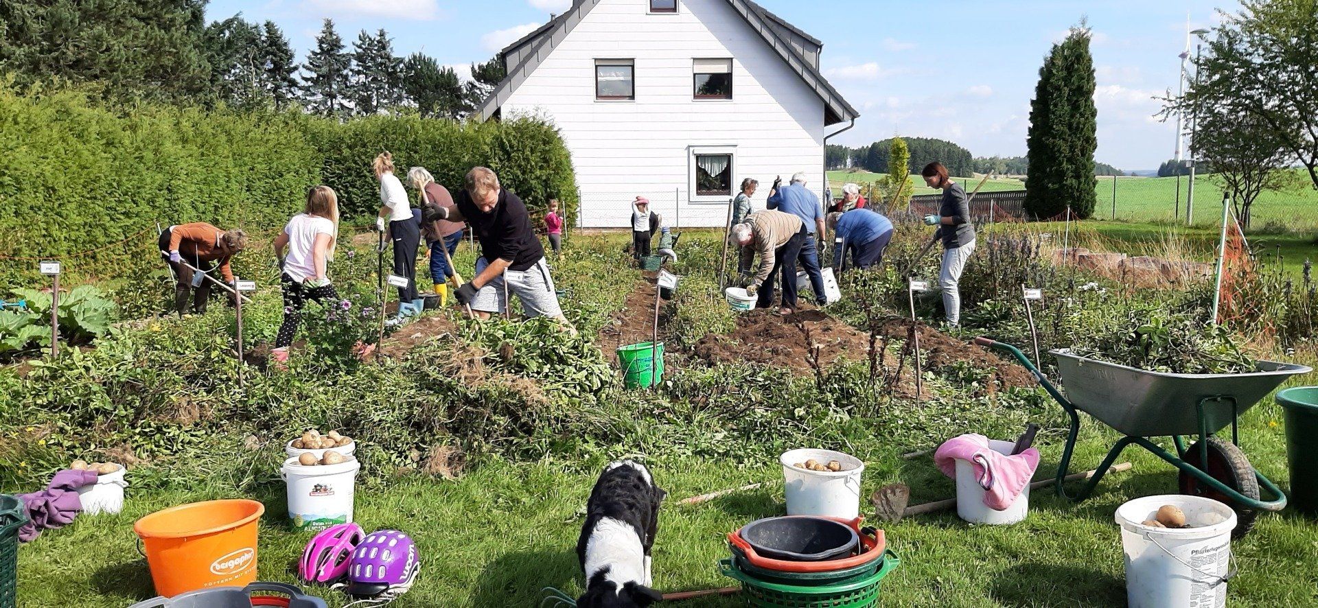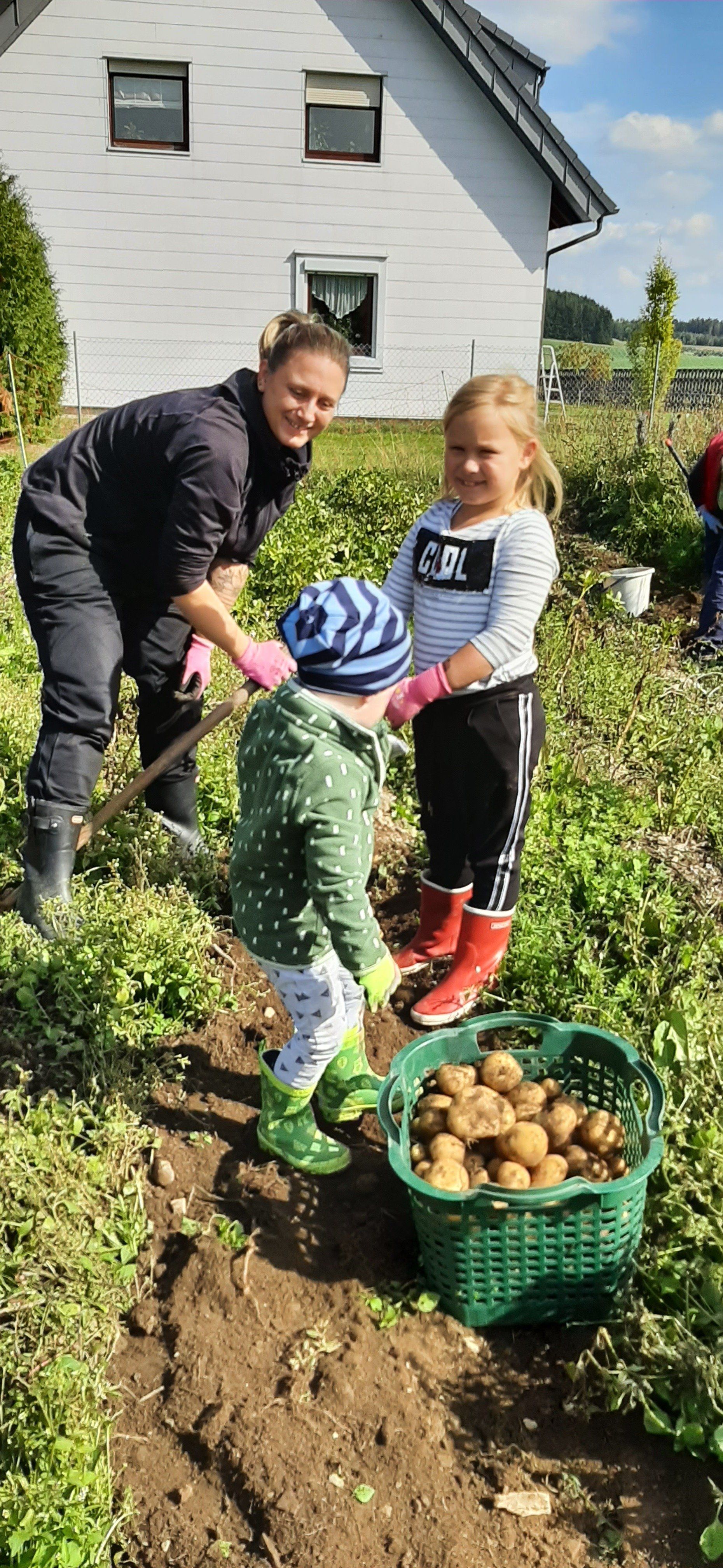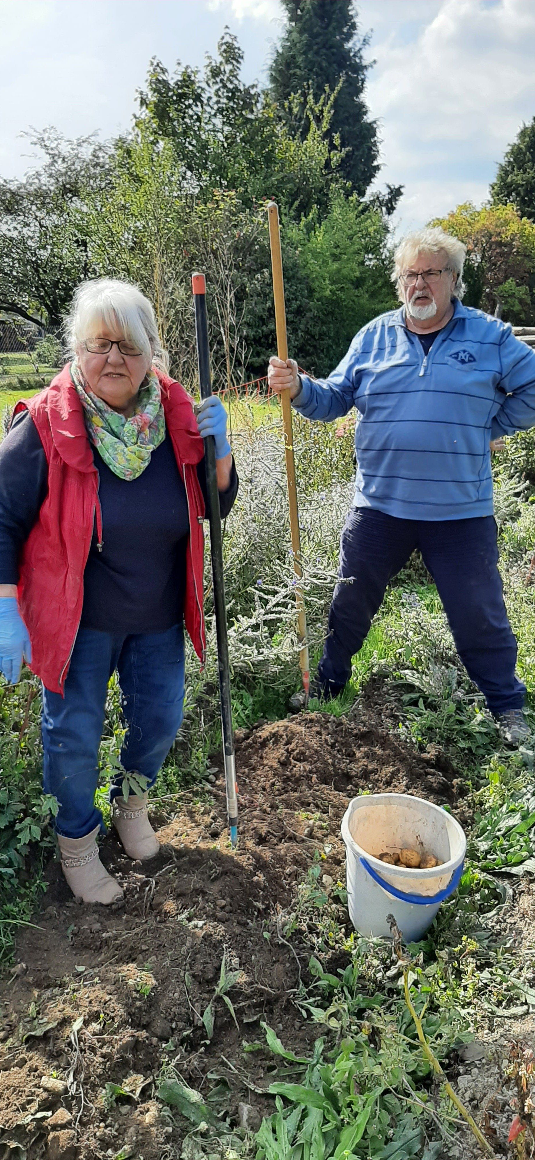 Der Gartenbauverein Marlesreuth hat im Frühjahr mit 11 Familien Kartoffeln gesteckt und jetzt wurden mit der Harke, wie früher, die „Ärpfl“ gegraben.