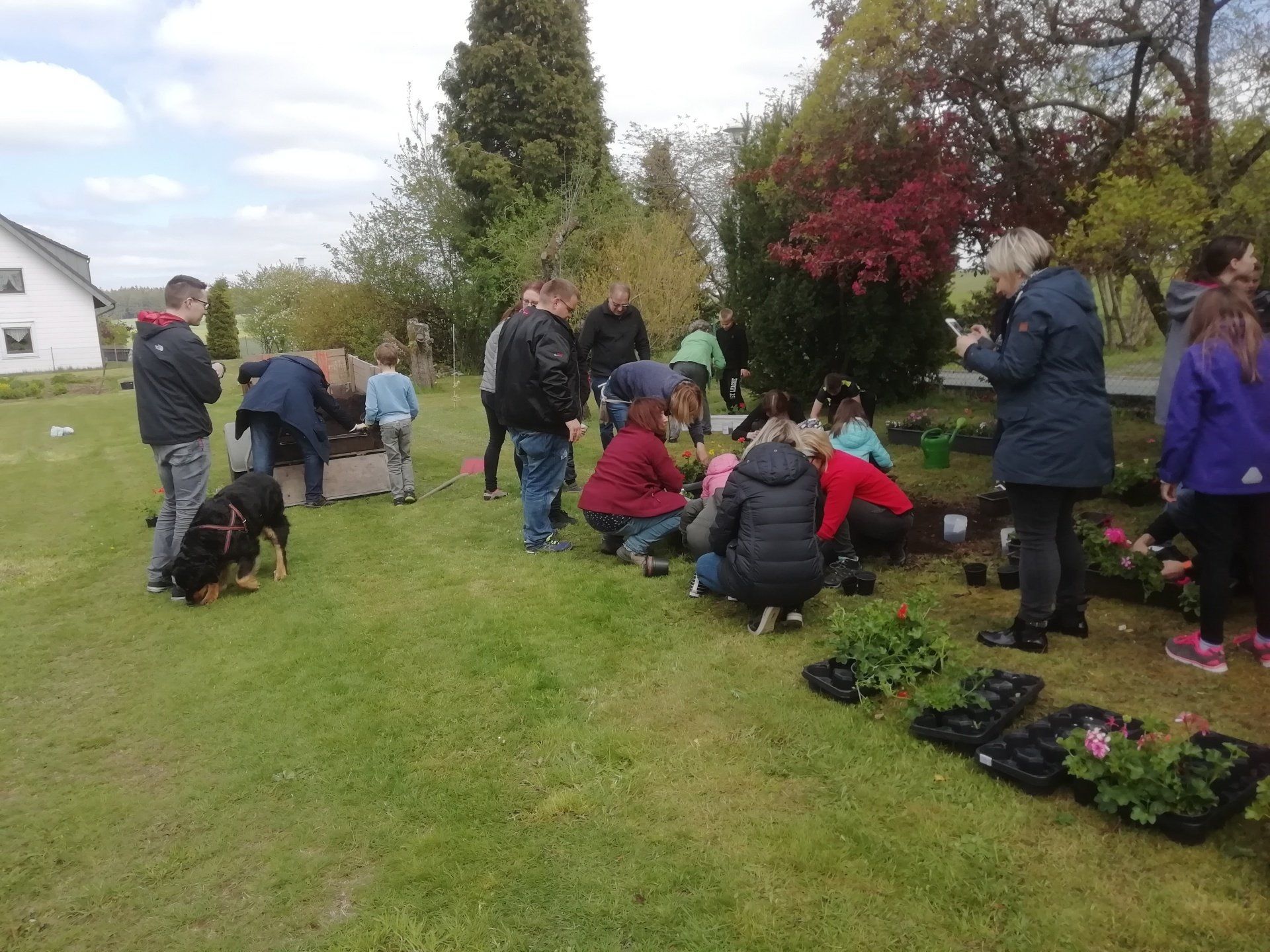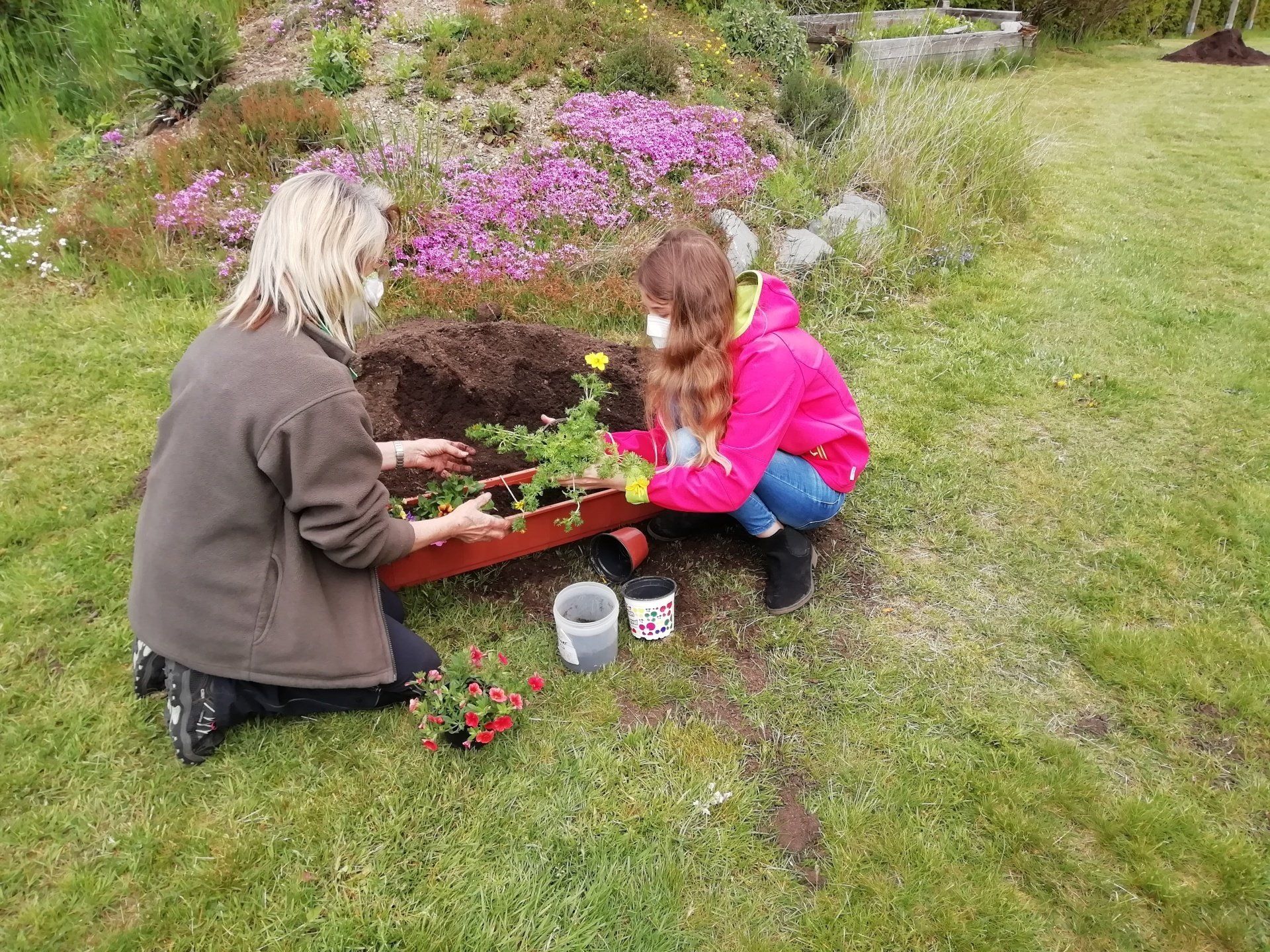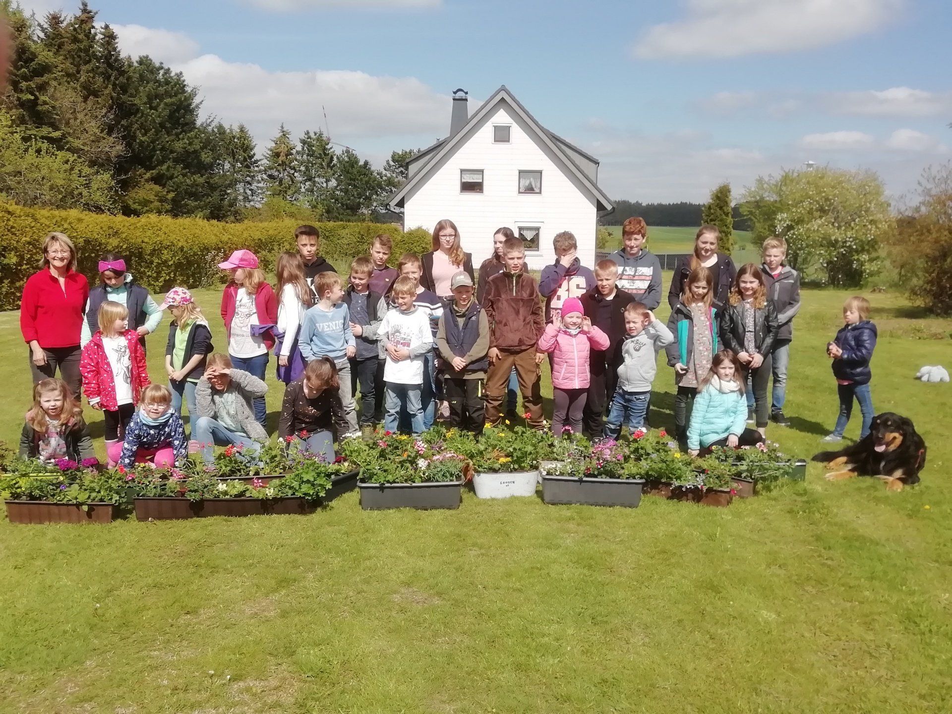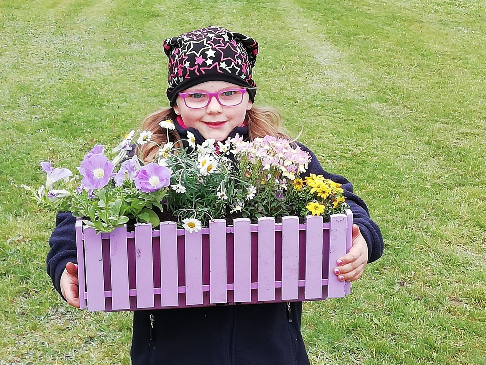 Jedes Jahr bieten wir den Kindern an, mitgebrachte Blumentöpfe, Blumenkästen und Schalen mit bereit gestellten Sommerblumen zu bepflanzen. Die gute Blumenerde und der Dünger werden ebenfalls zur Verfügung gestellt.