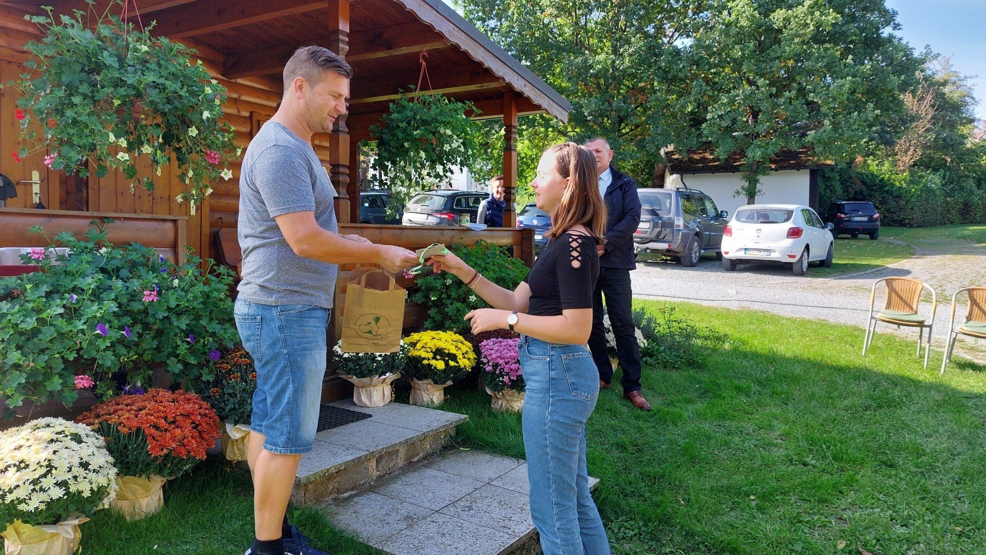 Eingeladen waren die ersten 10 Preisträger und sie bekamen als Anerkennung für ihren Blumenschmuck einen Gutschein und einen Blumenstock.