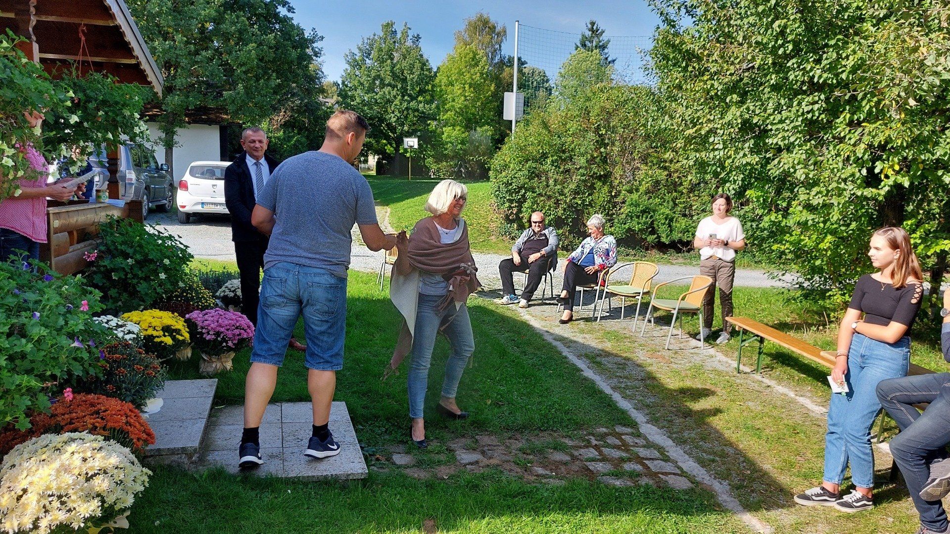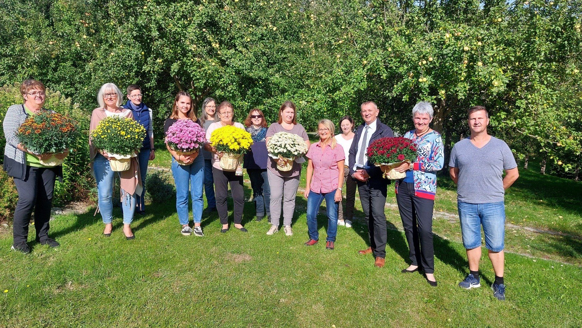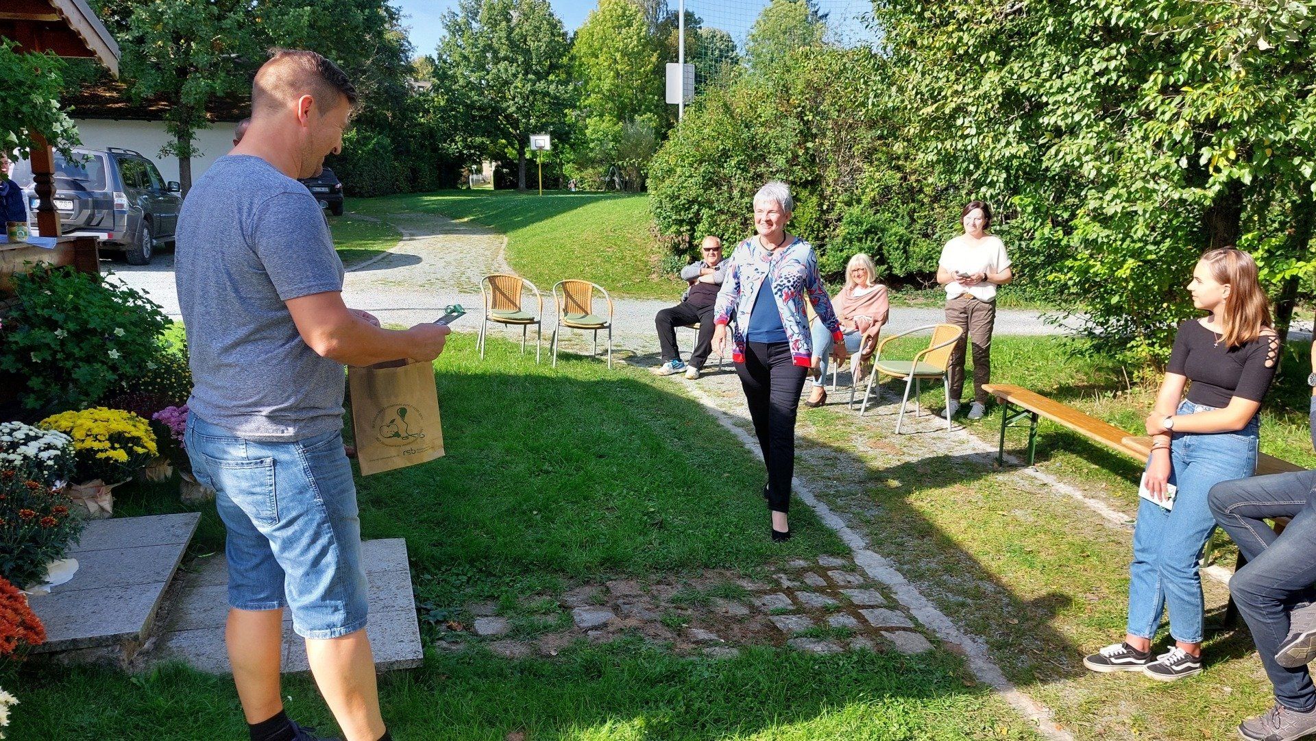 Bürgermeister Stumpf bedankte sich für den Blumenschmuck im Ort und für die viele ehrenamtliche Arbeit die geleistet wird und überreichte eine Spende.