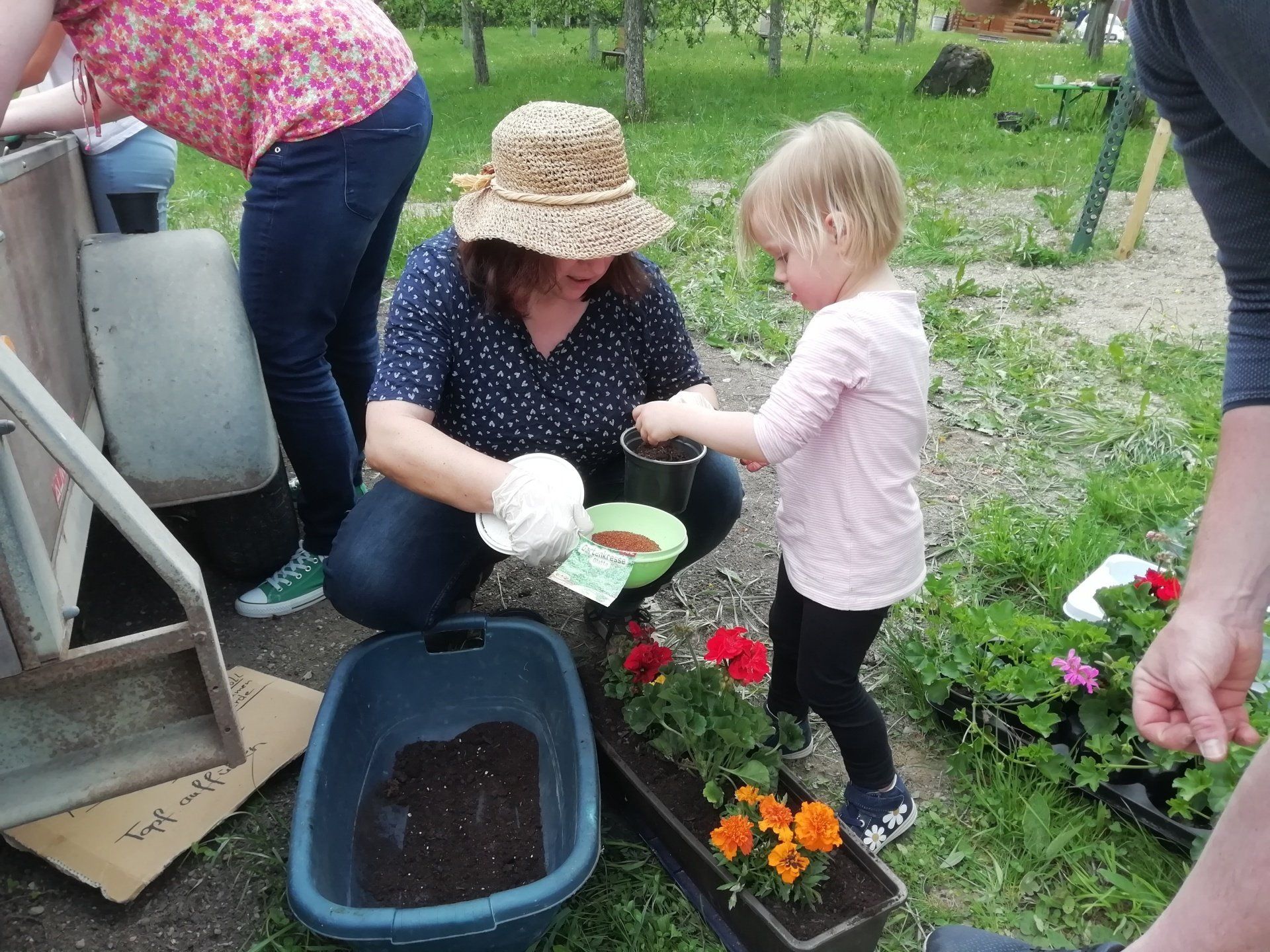 Die Kinder hatten die Möglichkeit Sommerblumen zu pflanzen und allerlei Sachen zu basteln.
