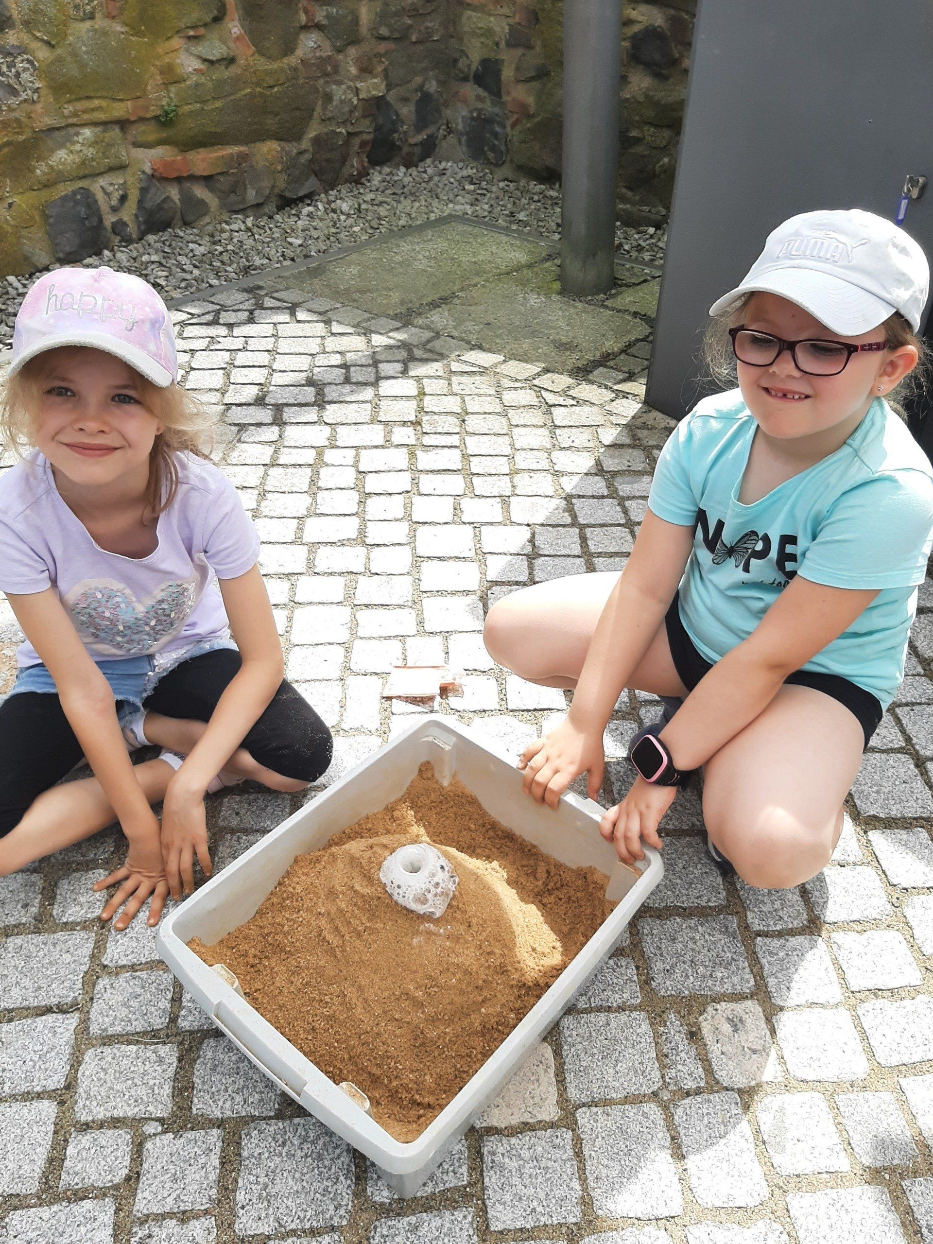 Über den Geopfad, auf dem die Erdgeschichte der Oberpfalz anhand verschiedenen Exponate erzählt wird, erreichten die Teilnehmer das Museum. Vorher konnten die Kinder selber einen Vulkan "basteln" und zum Ausbruch bringen.