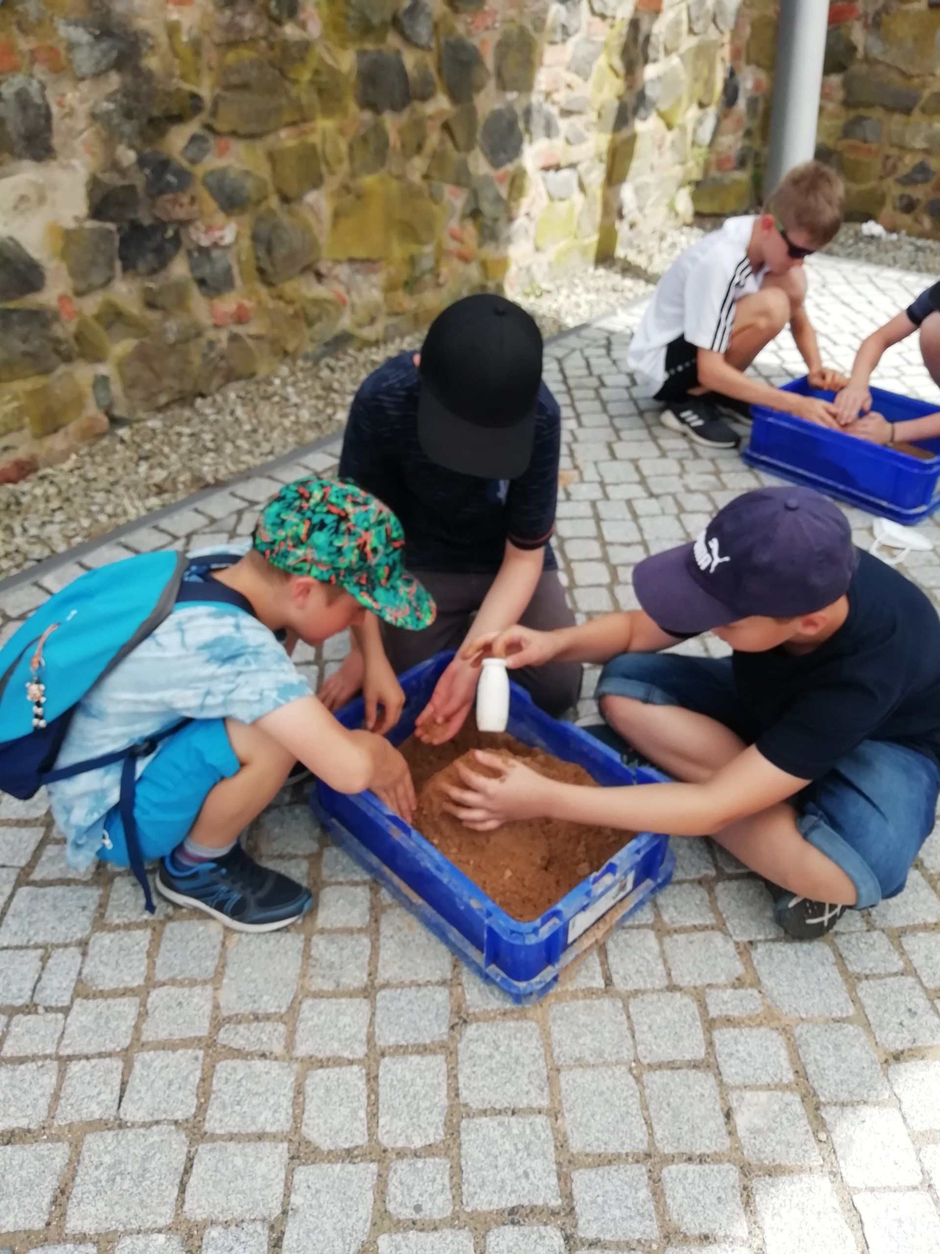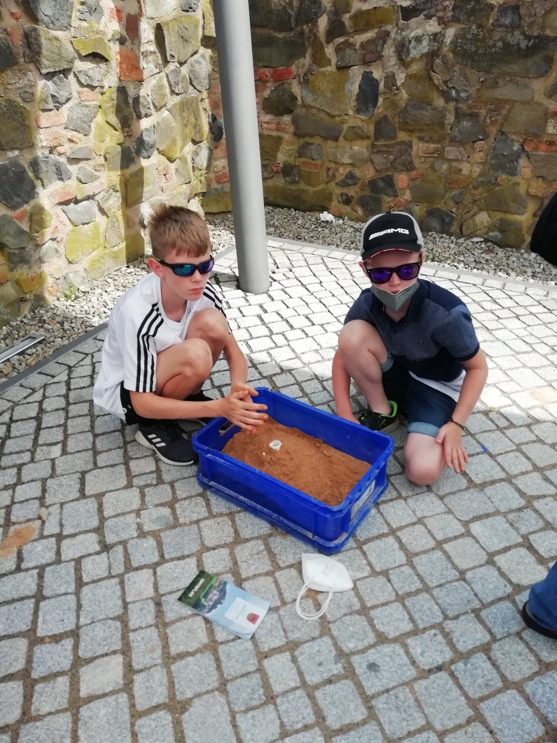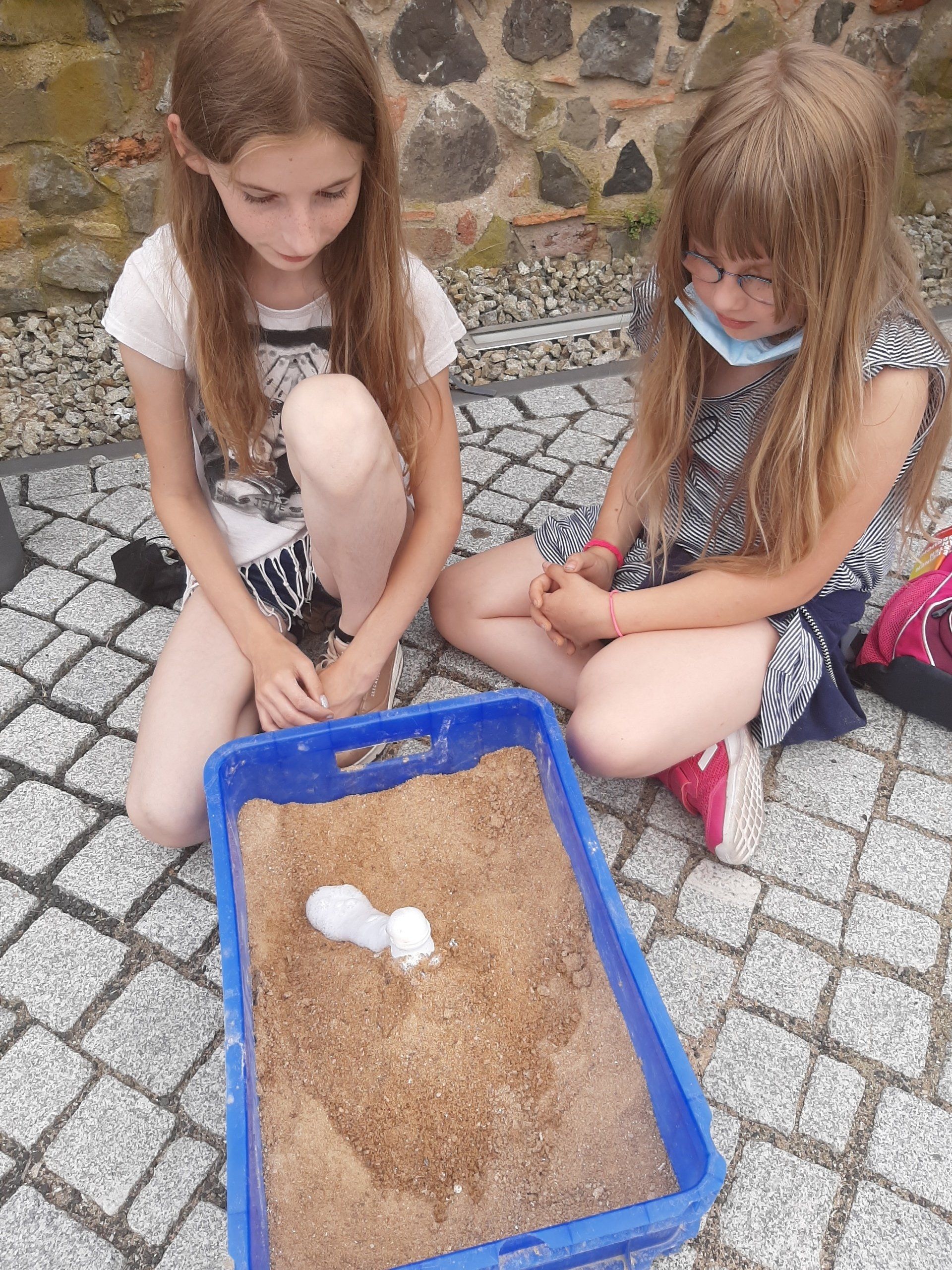 Über den Geopfad, auf dem die Erdgeschichte der Oberpfalz anhand verschiedenen Exponate erzählt wird, erreichten die Teilnehmer das Museum. Vorher konnten die Kinder selber einen Vulkan "basteln" und zum Ausbruch bringen.