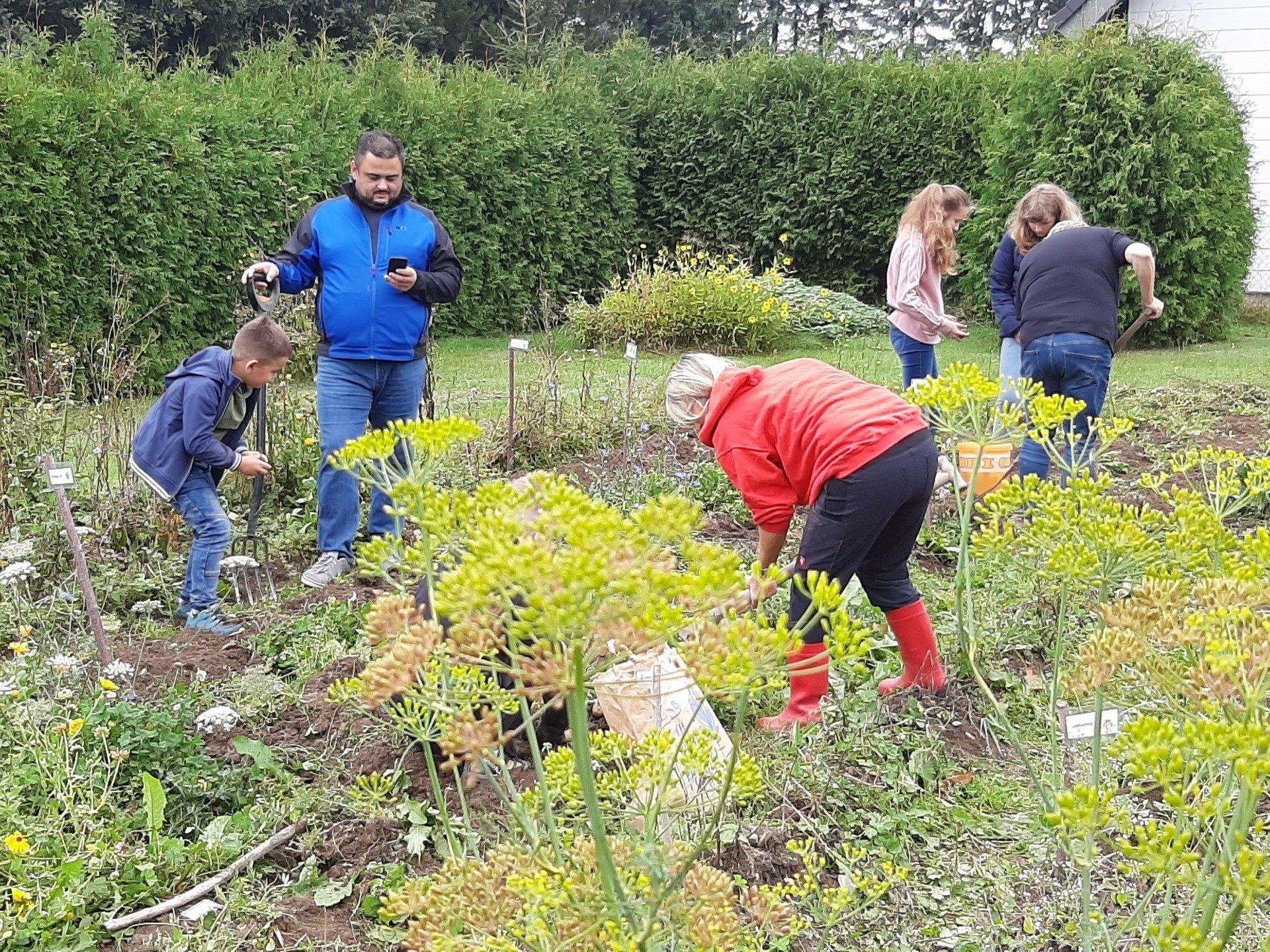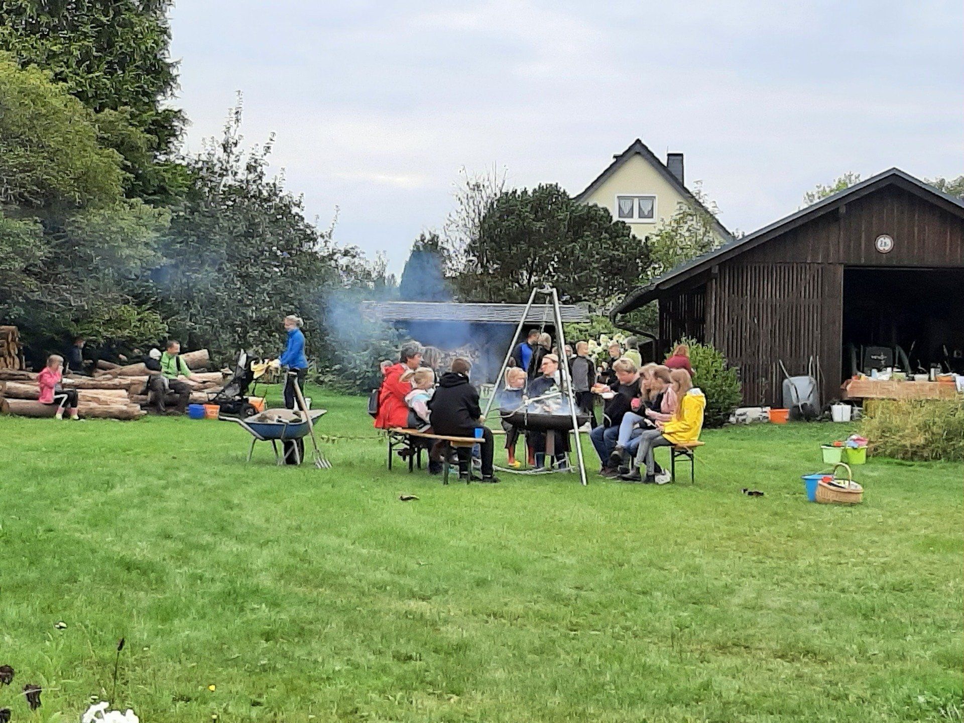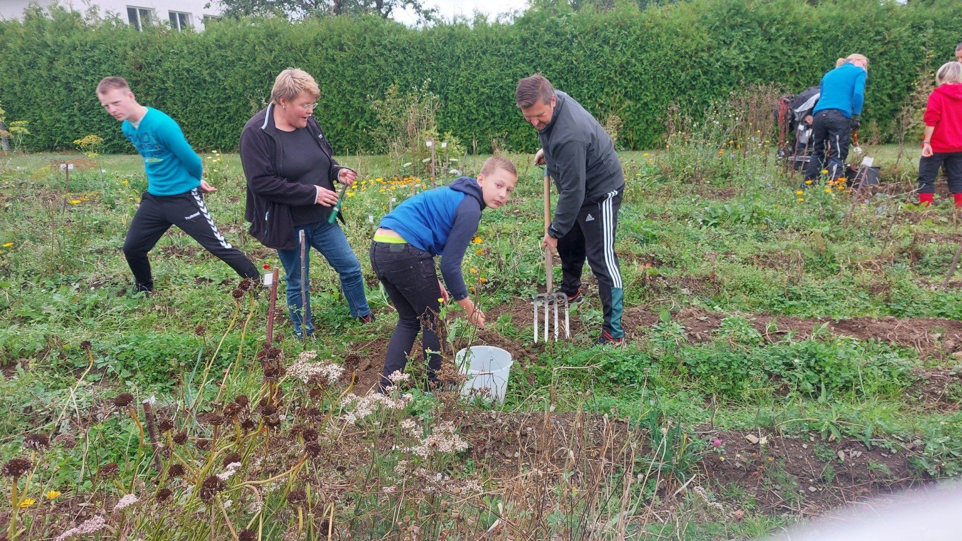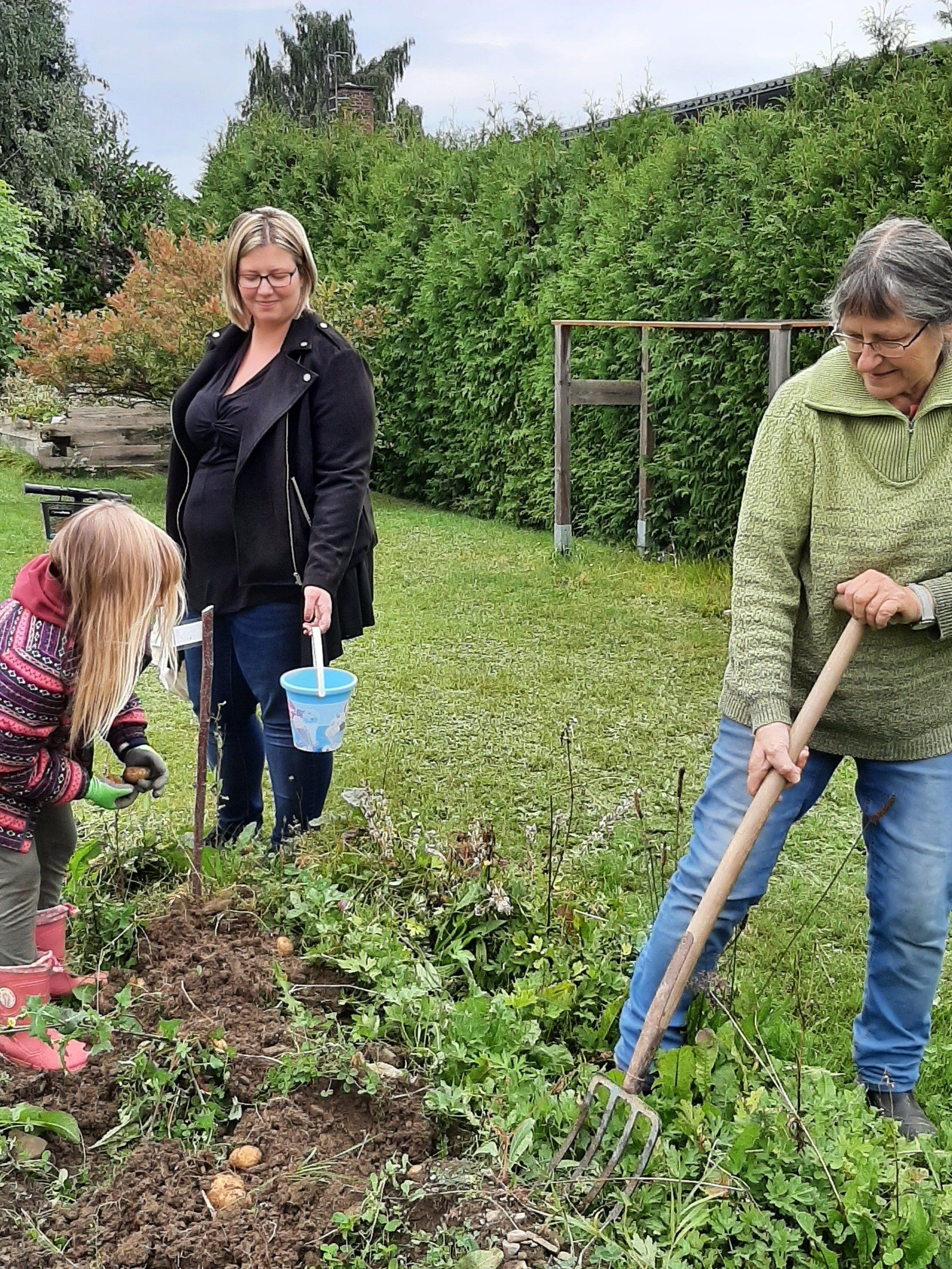 Mitte September wurden Kartoffeln geerntet. Insgesamt kamen 37 Kinder um ihre im Frühjahr gesteckten Kartoffeln zu ernten. Aus terminlichen Gründen kamen einige Kinder an anderen Tagen. Am "Haupterntetag" wurde die Feuerschale wieder in Betrieb genommen und Stockbrot gegrillt. Daneben gab es Kartoffeln mit Quark, Kartoffelsuppe und Kuchen.