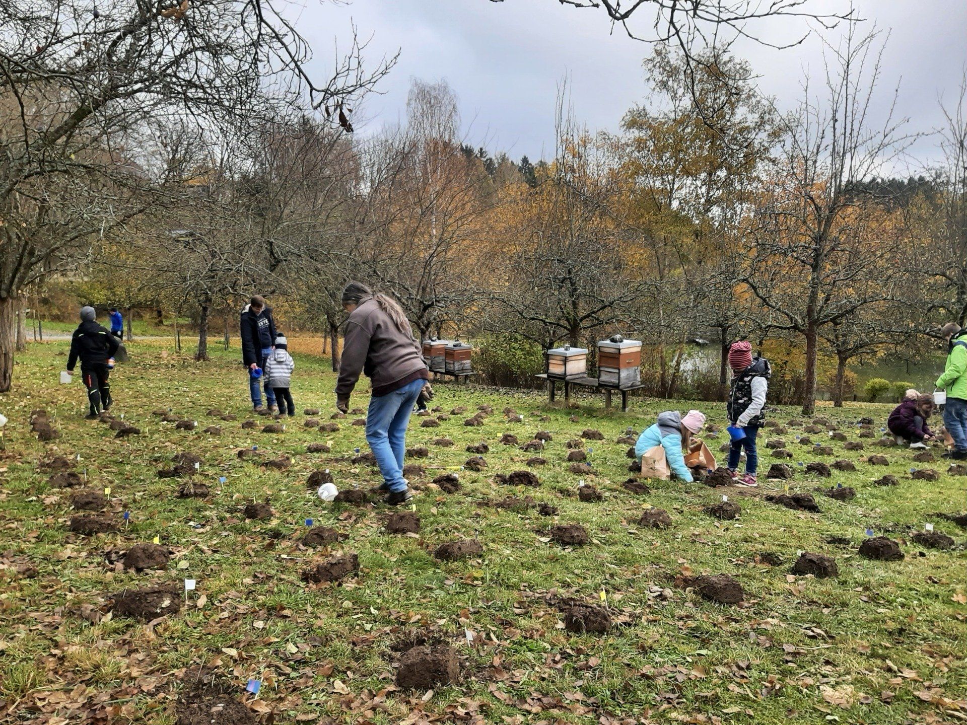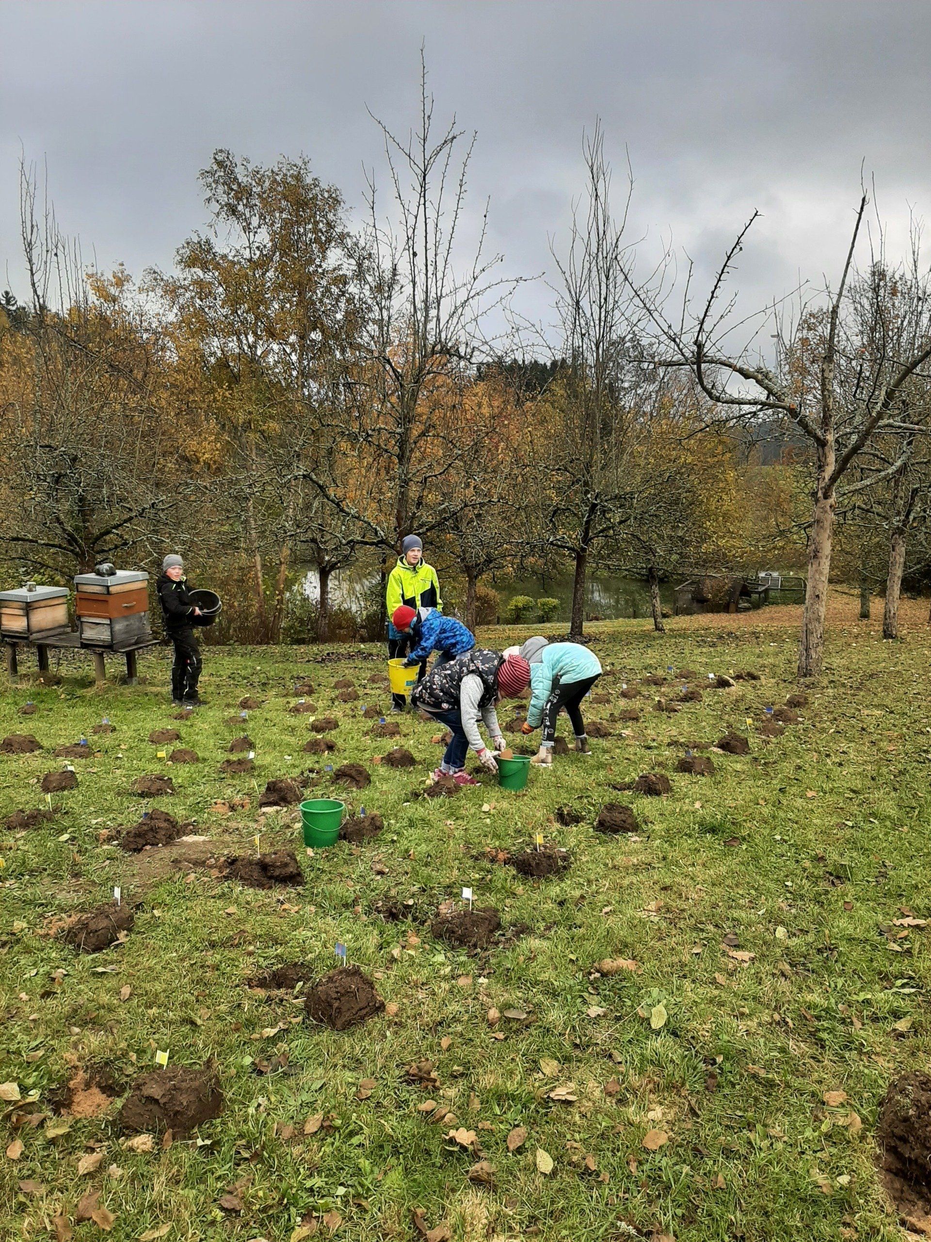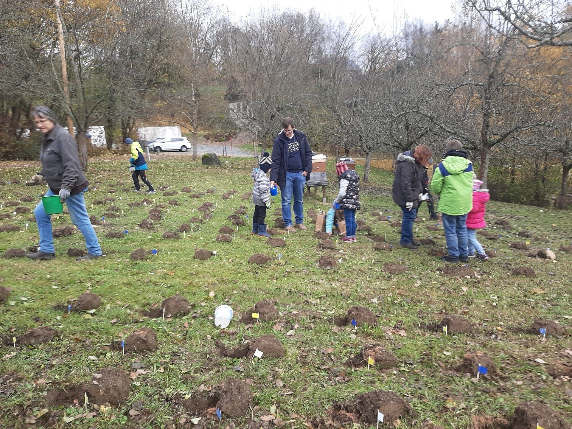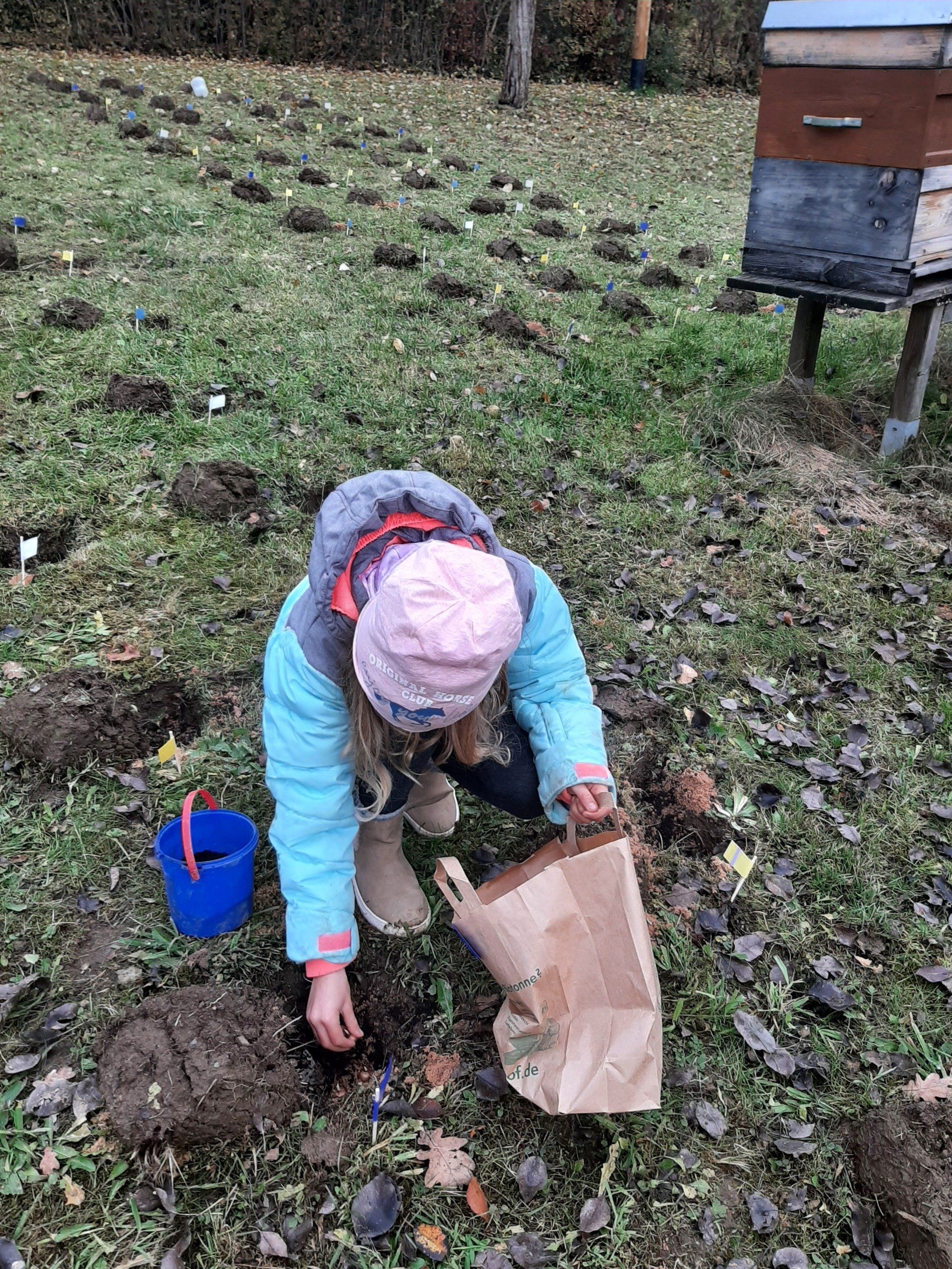 Inzwischen weit bekannt ist die herrliche Krokusblüte im Frühling auf der Streuobstwiese in Marlesreuth. Damit es auch weiterhin so schön blüht haben wir mit den Kindern erneut Krokusse gesteckt. Der sehr aktive Maulwurf hatte viele Krokuspflanzen zerstört. Auch einige noch unbepflanzte Stellen auf der Streuobstwiese wurden jetzt mit Krokussen bestückt.