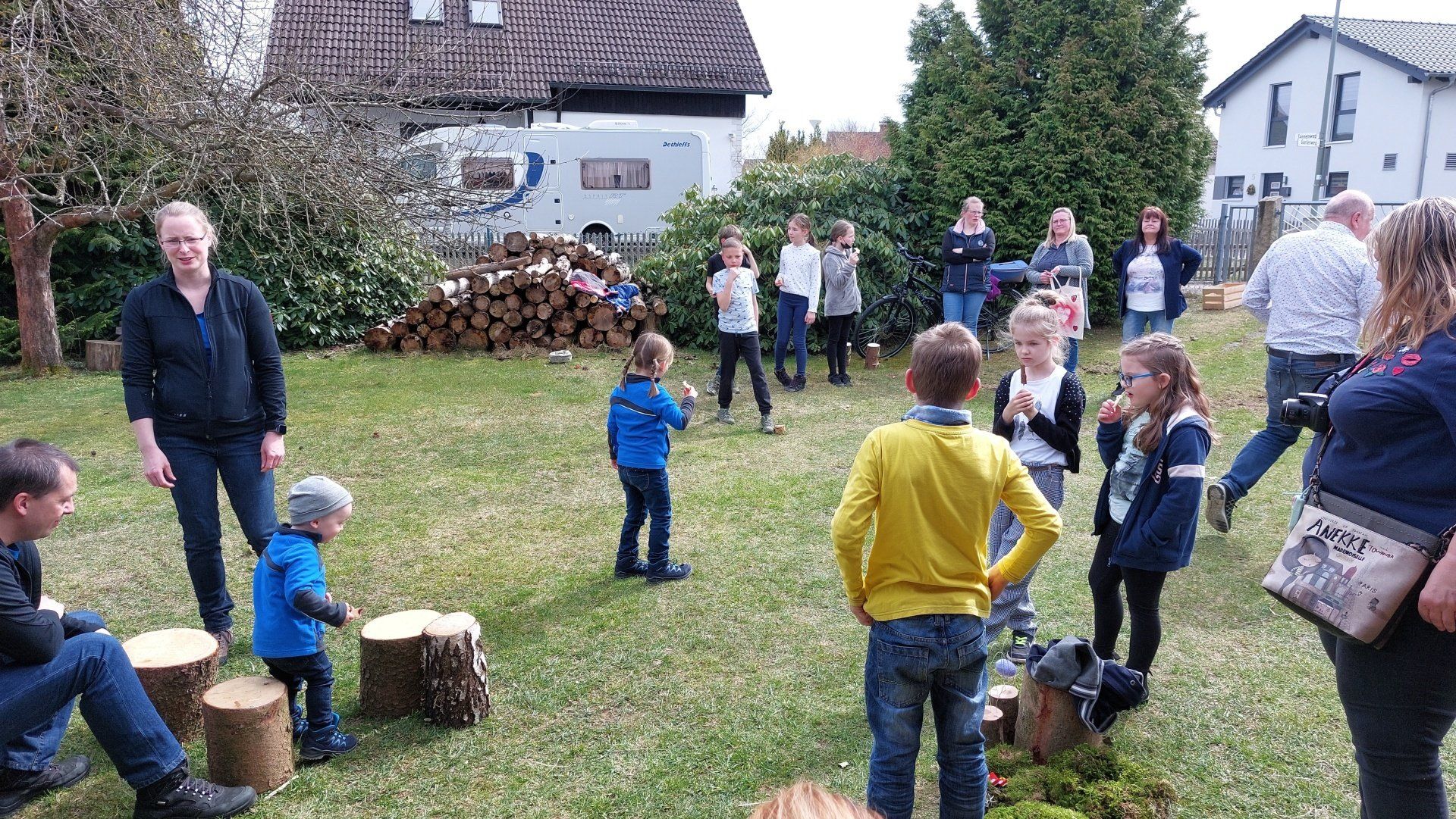 Zur Preisübergabe traf man sich im Garten der Vorsitzenden Beate Hohberger in Marlesreuth, wo gerade „Osterbasteln“ angesagt war.