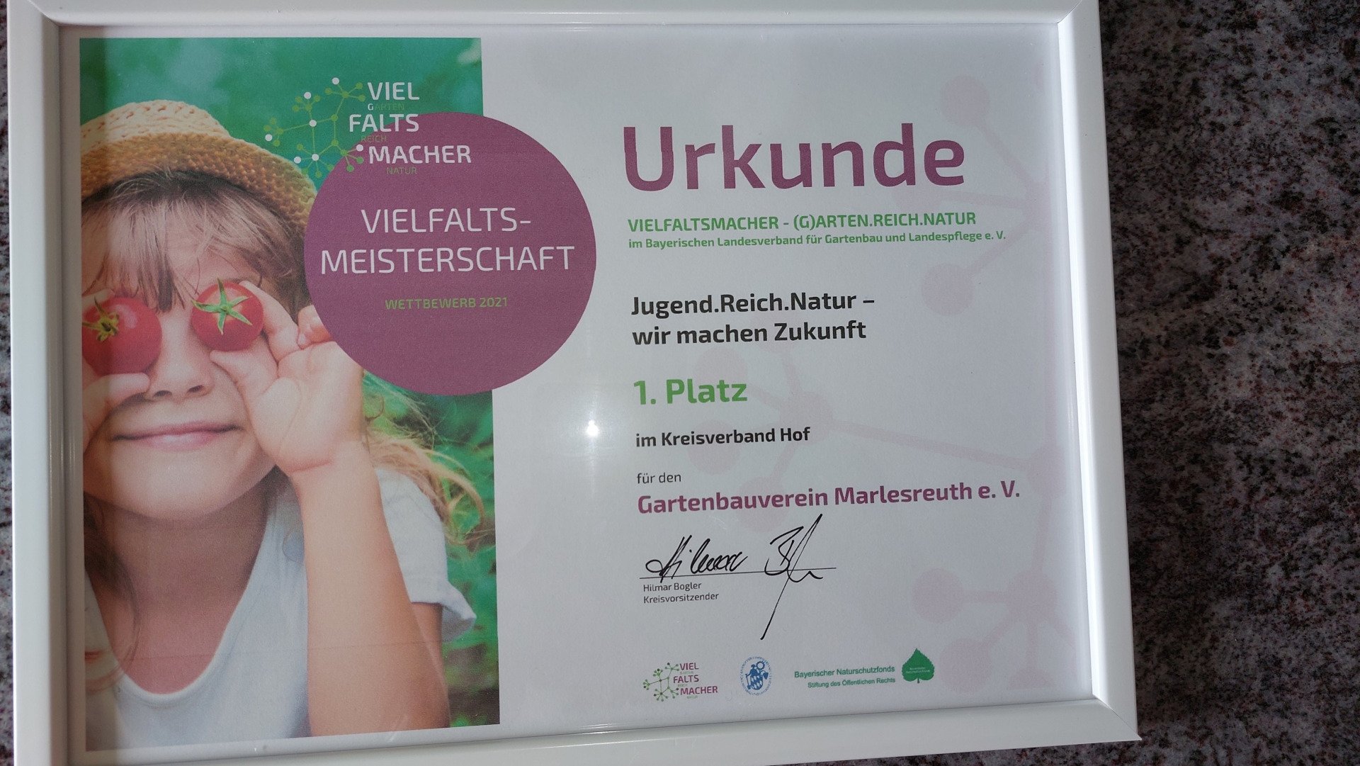 „Bei dem landesweit ausgeschriebenen Wettbewerb „Vielfaltsmacher“ bewarben sich die Jugendgruppen aus den Gartenbauvereinen Marlesreuth und Sparneck und errangen jeweils 1. Preise auf Kreisebene.