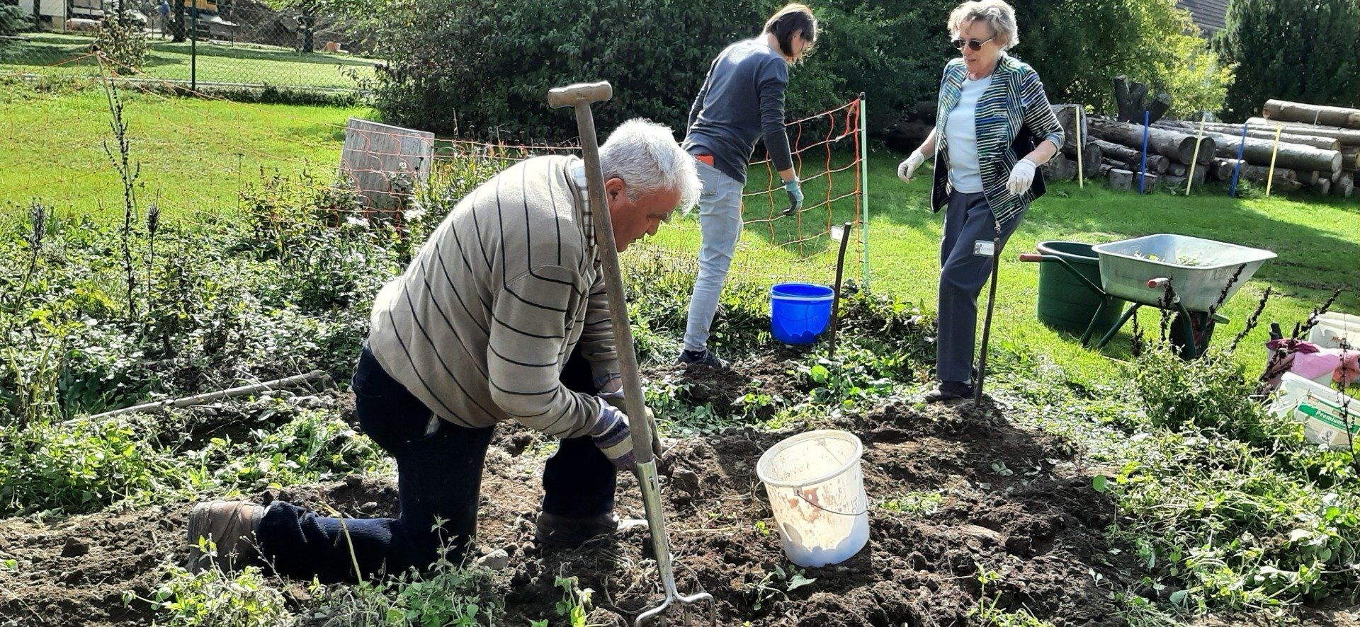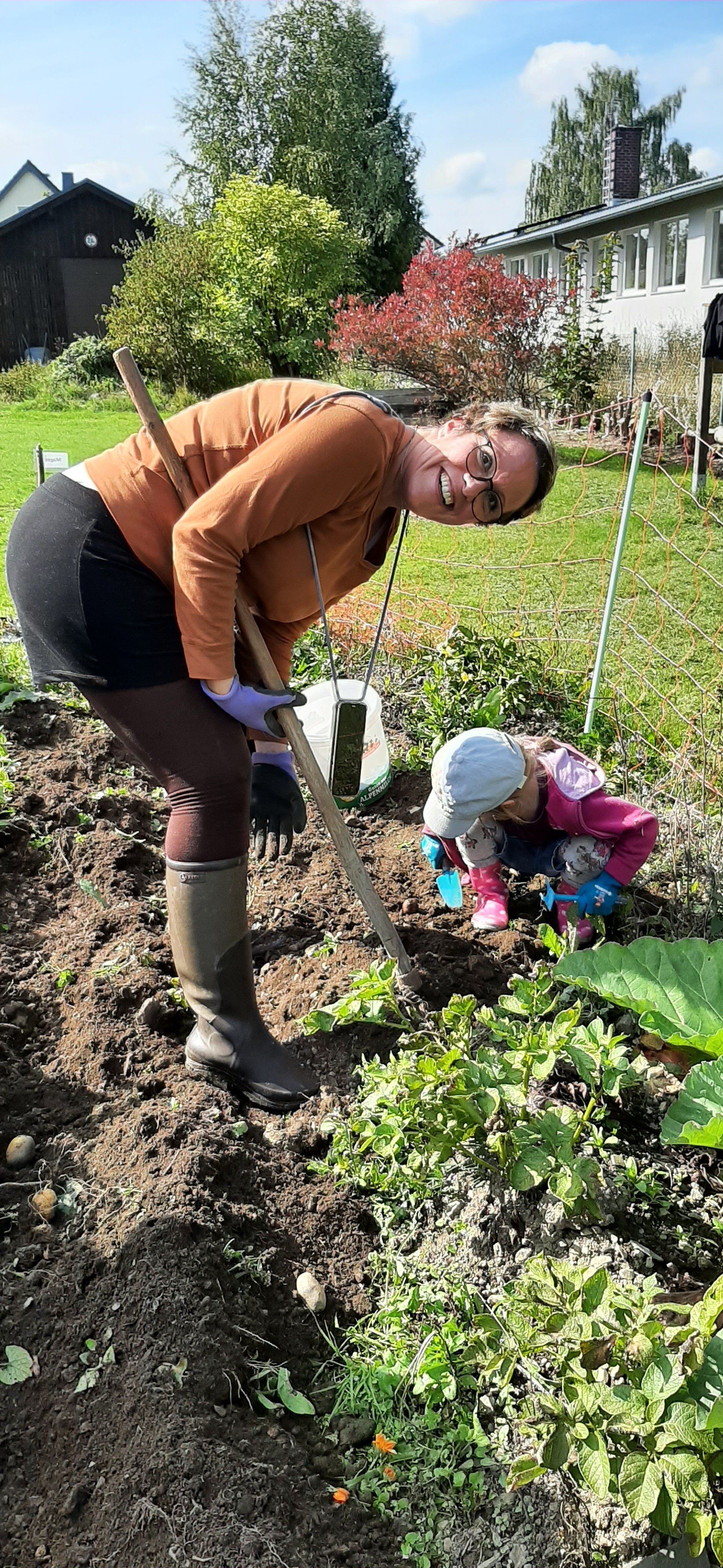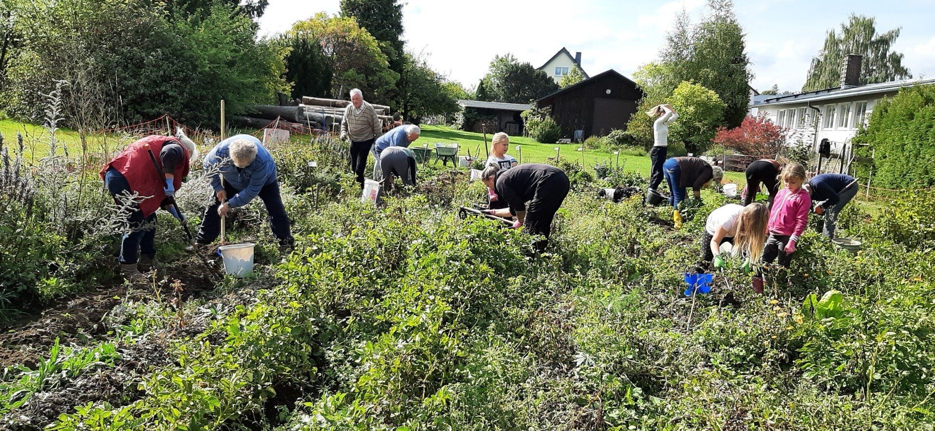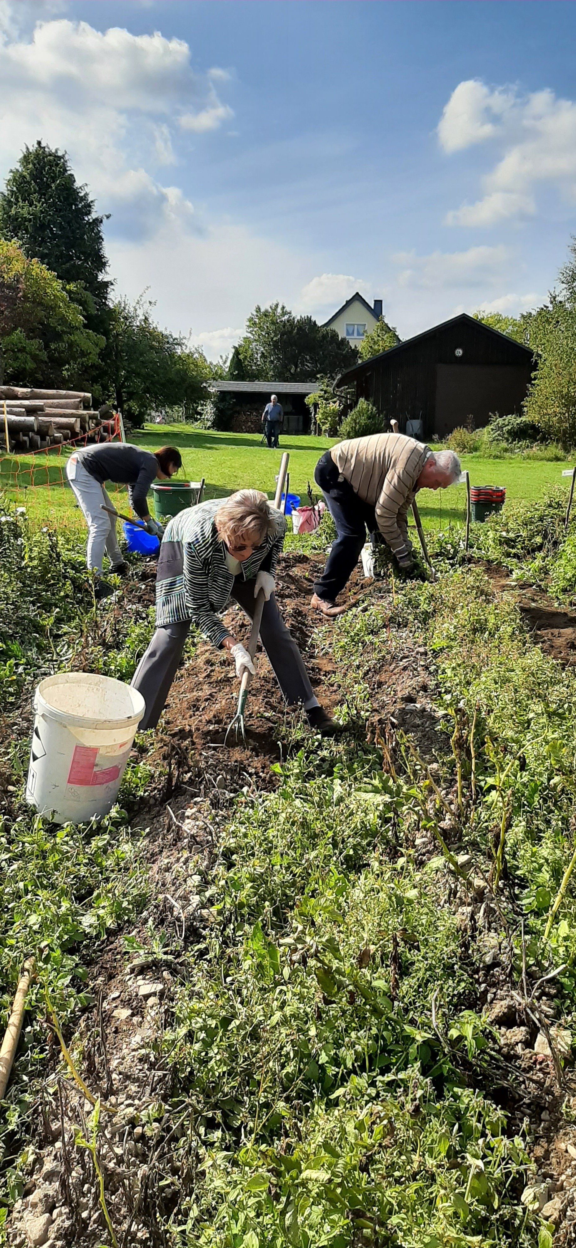 Der Gartenbauverein Marlesreuth hat im Frühjahr mit 11 Familien Kartoffeln gesteckt und jetzt wurden mit der Harke, wie früher, die „Ärpfl“ gegraben.